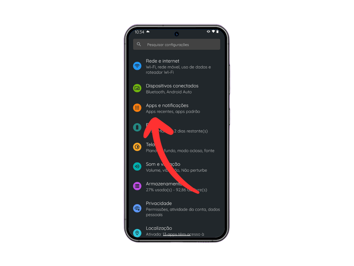 Escolha o app (navegador/gerenciador) e habilite a permissão.