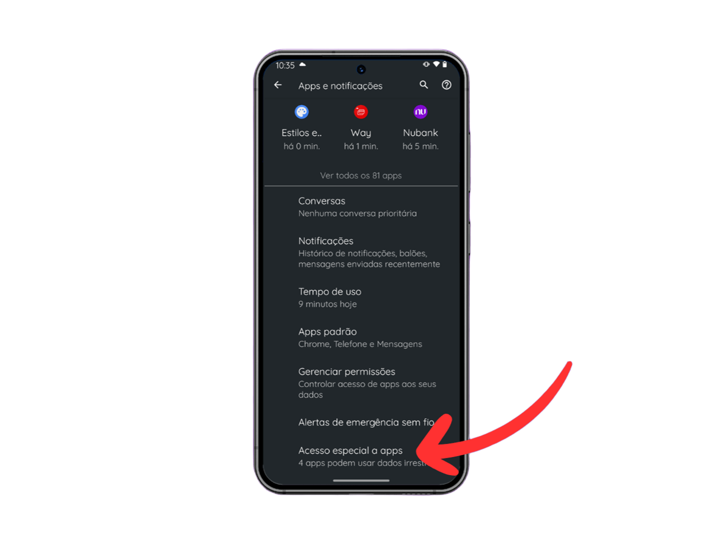 Vá em Apps e notificações → Acesso especial a apps (ou Avançado).