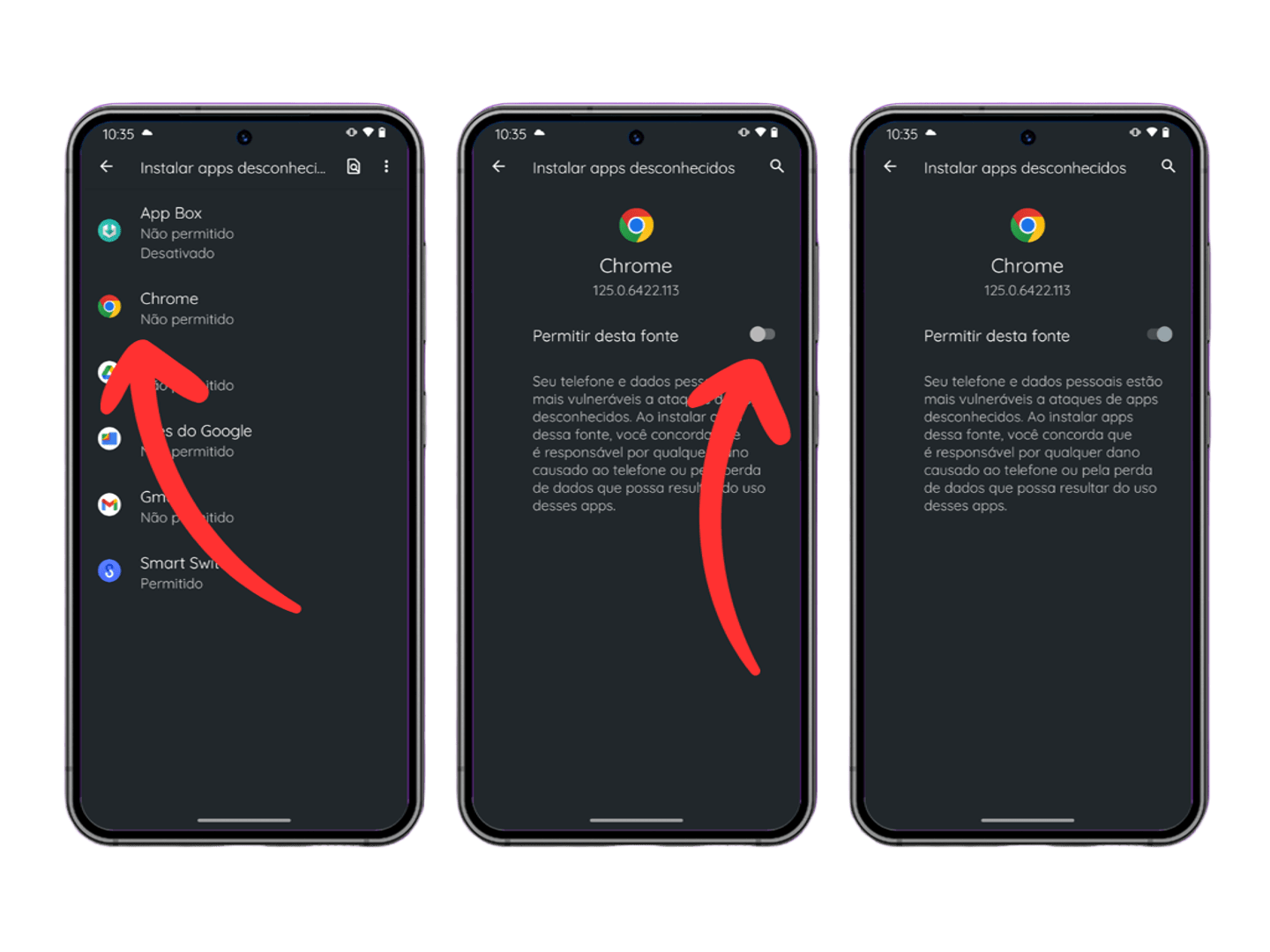 Selecione o aplicativo que fará a instalação e ative Permitir desta fonte.