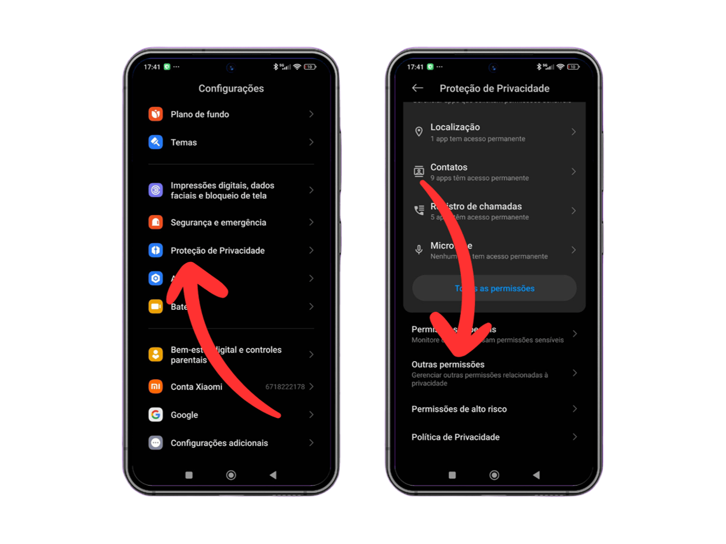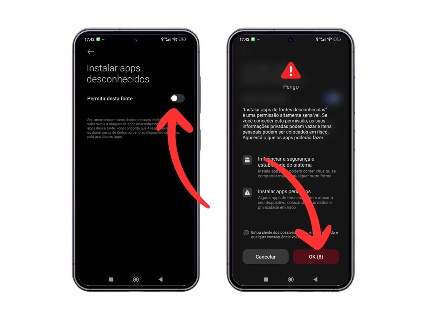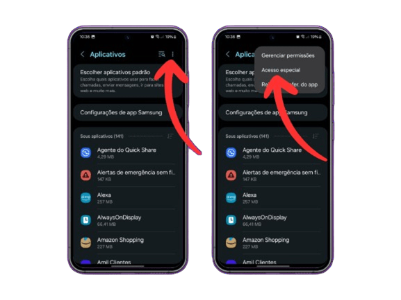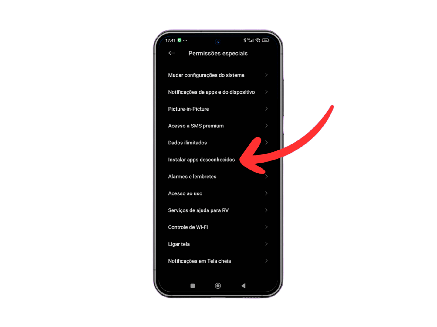 Atenção: nomes de menus podem variar entre modelos e versões. Após instalar, revogue a permissão para maior segurança.