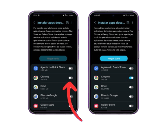 Veja abaixo como habilitar a instalação de apps de fontes externas em alguns modelos de aparelhos.